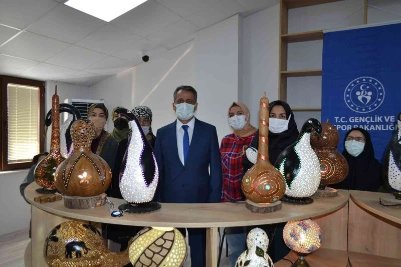Gençlik Merkezi hakkında bilgi veren Müdür Muhammet Özbey ise “Bugün burada Halk Eğitim Merkeziyle koordineli bir çalışma yaptık. Birlikte sergiyi açtık. Halk Eğitim Merkezi kursiyerleri ürünlerini merkezimizde sergilediler. Birlikte yeni projelerle yeniden karşılıklı çalışmalar içerisinde bulunacağız. Gençlik merkezimizin bin 147 genç üyesi var. 17 branşımız var. Spor alanında 5 branşa sahibiz. Bunlar; tekvando, kick boks, karate, jimnastik ve kadınlara özel plates. Güzel sanatlar ve müzik atölyelerimiz mevcut. Piyano, gitar, bağlama ve keman eğitimi, okuma yazma ve yabancı dil eğitimi, çocuk gelişimi, kabak işleme eğitimi var. Hafta içi her gün ve hafta sonları da açığız” şeklinde konuştu.