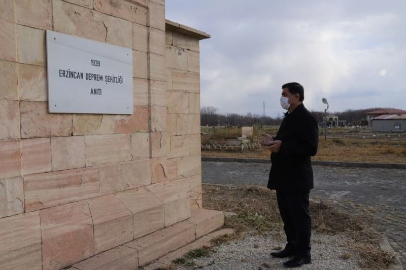 Erzincan Belediye Başkanı Bekir Aksun, kentte 27 Aralık 1939’da yaşanan depremde hayatını kaybedenlerin defnedildiği Piri Sami Hazretleri Türbe ve Mezarlığı’ndaki 1939 Erzincan Deprem Şehitliği Anıtını ziyaret etti.