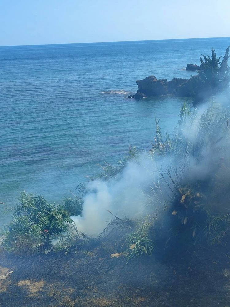 Okurcalar Mahallesi'ndeki otellere yakın bir bölgedeki çalılık alanda yangın çıktı.