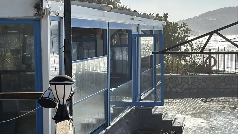 Balık restoranında dün bir personelin temizlik yaptığı, 2 kişinin de yemek yediği sırada dev dalgalar içeriye girdi.