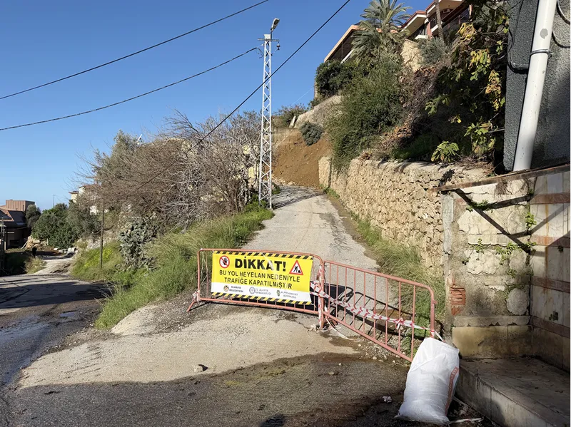 Villa ve konutların bulunduğu bölgede meydana gelen toprak kaymasında, villaların istinat duvarları yıkıldı, bir evin giriş kapısı toprak ve taş yığınlarıyla doldu.