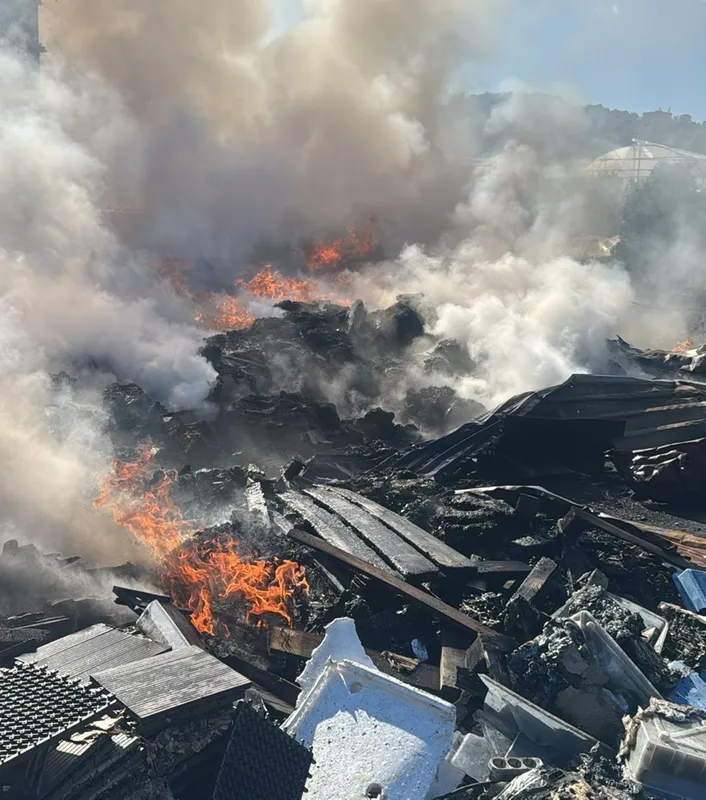 İtfaiye ekiplerinin çalışmasıyla söndürülen yangında depo ve arka kısımda atıl durumdaki malzemeler kullanılamaz hale geldi.