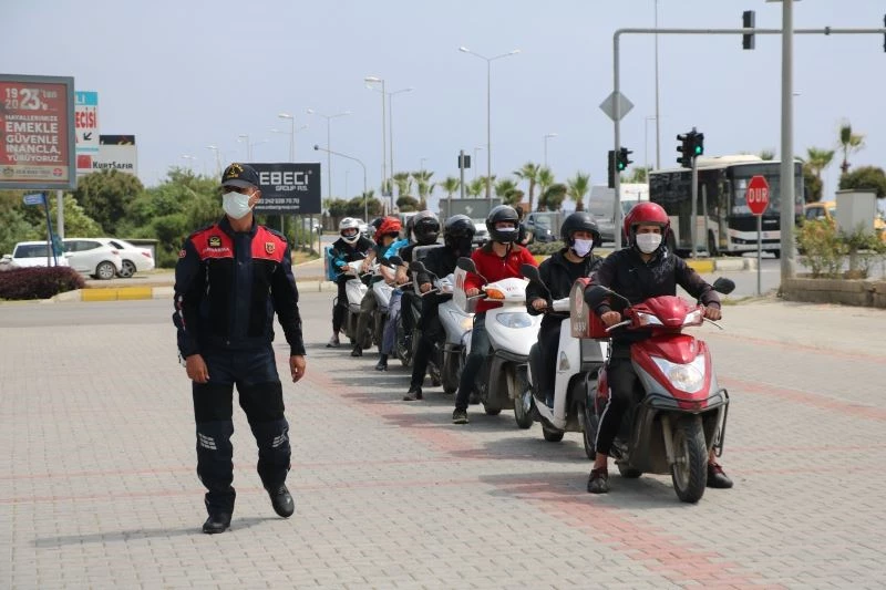 Antalya’nın Alanya ilçesinde jandarma ekipleri tarafından kuryelere ve motosiklet sürücülerine Türkiye’de ilk kez başlatılan “motosiklet güvenli sürüş” projesine ilişkin eğitim verildi.
