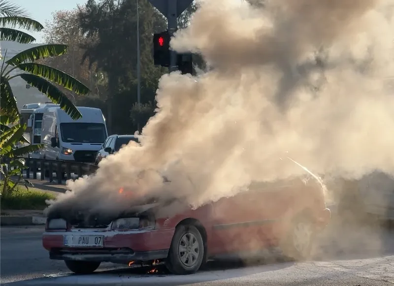 ANTALYA - Antalya'nın Alanya ilçesinde seyir halinde yangın çıkan otomobil kullanılamaz hale geldi.
