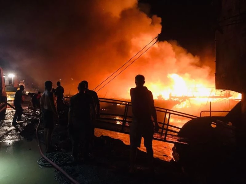ANTALYA - Antalya'nın Alanya ilçesindeki bir tur teknesinde çıkan ve diğer teknelere de sıçrayan yangına müdahale ediliyor.