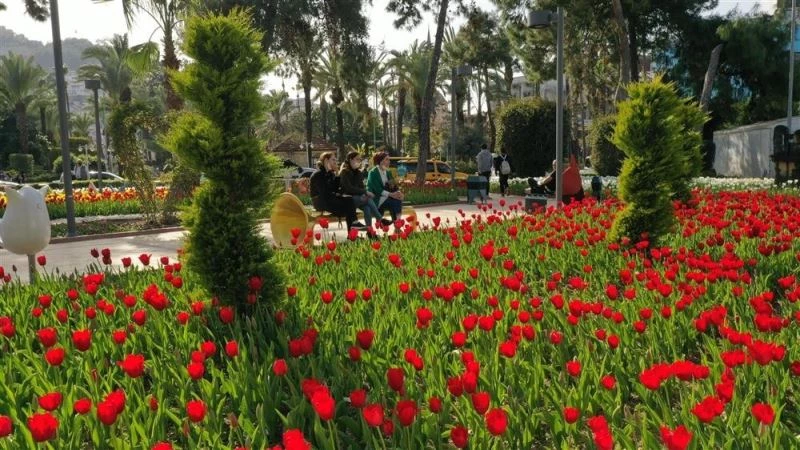 Alanya Belediyesi Park ve Bahçeler Müdürlüğü’nün ekimini gerçekleştirdiği rengarenk çiçekler, baharın müjdecisi oldu. Kış aylarında dikimleri yapılan lale, nergis ve sümbül soğanlarının çiçek açmasıyla birlikte Kentteki parklar, refüjler ve yeşil alanlar adeta renk cümbüşüne dönüştü. Yerli ve yabancı misafirlerin yoğun ilgi gösterdiği yeşil alanlar, güzellikleriyle bu yıl da anılardaki yerini aldı.
