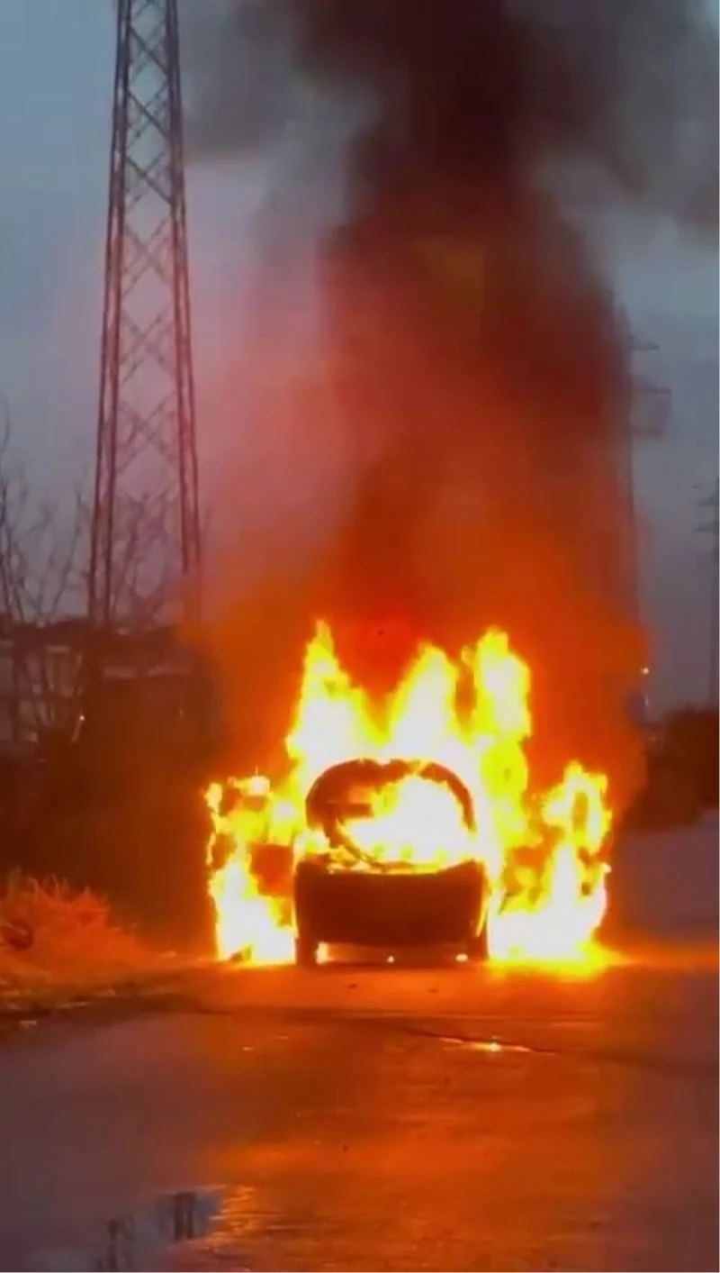 Alev topuna dönen araçtan geriye demir yığınları kaldı