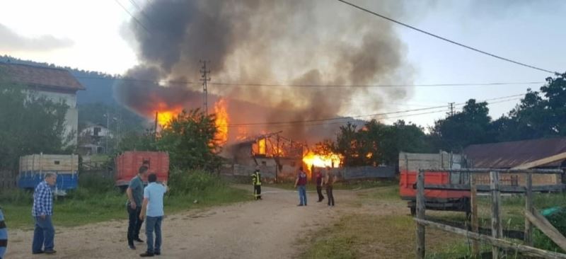 Karabük’ün Eskipazar ilçesine bağlı Şevkiler Köyü’nde çıkan yangında 2 ev ile 1 traktör kül oldu. O anları cep telefonu ile kaydeden bir kadın ağlayarak yangının sönmesi için dua etti.
