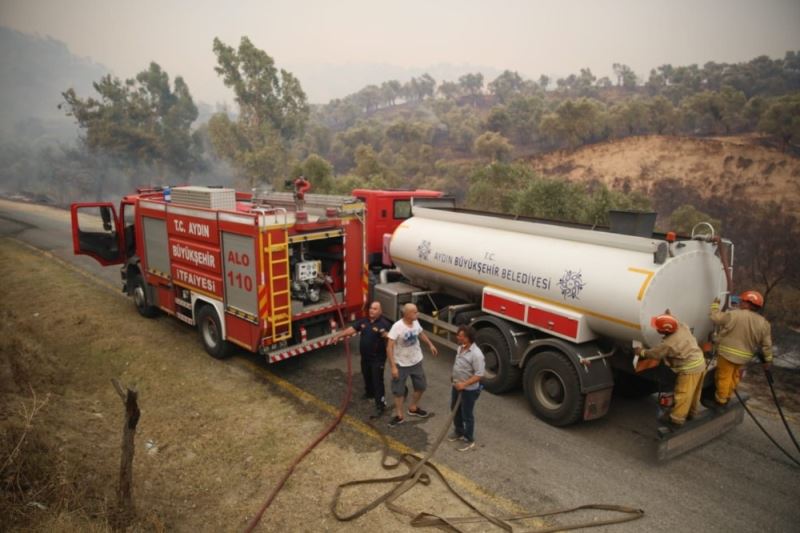 Gece saatlerinde de devam eden yangını söndürmek için Aydın Büyükşehir Belediyesi ekipleri seferber oldu. Aydın Büyükşehir Belediyesi Genel Sekreteri Ertuğrul Yamen ve İtfaiye Daire Başkanı Serdar Adanır başta olmak üzere Büyükşehir Belediyesi bürokratları yangının kontrol altına alınabilmesi için bölgede ekipleri sevk ve idare ediyor. Ekiplerin gayretli çalışmaları ile yangının yerleşim alanlarına sıçraması önlenirken, yangının yüksek kesimlerde devam ettiği öğrenildi. Büyükşehir Belediyesi’nin ağır iş makineleri de ormanlık alanda müdahaleyi kolaylaştırabilmek için arazözlere yol açıyor. Büyükşehir Belediyesi yangına 60 araç ve 500 personelle müdahale ediyor. Diğer taraftan ASKİ’ye ve Büyükşehir Belediyesi’ne ait bölgedeki tüm su tankerleri de söndürme ekiplerine su taşımaya devam ediyor.