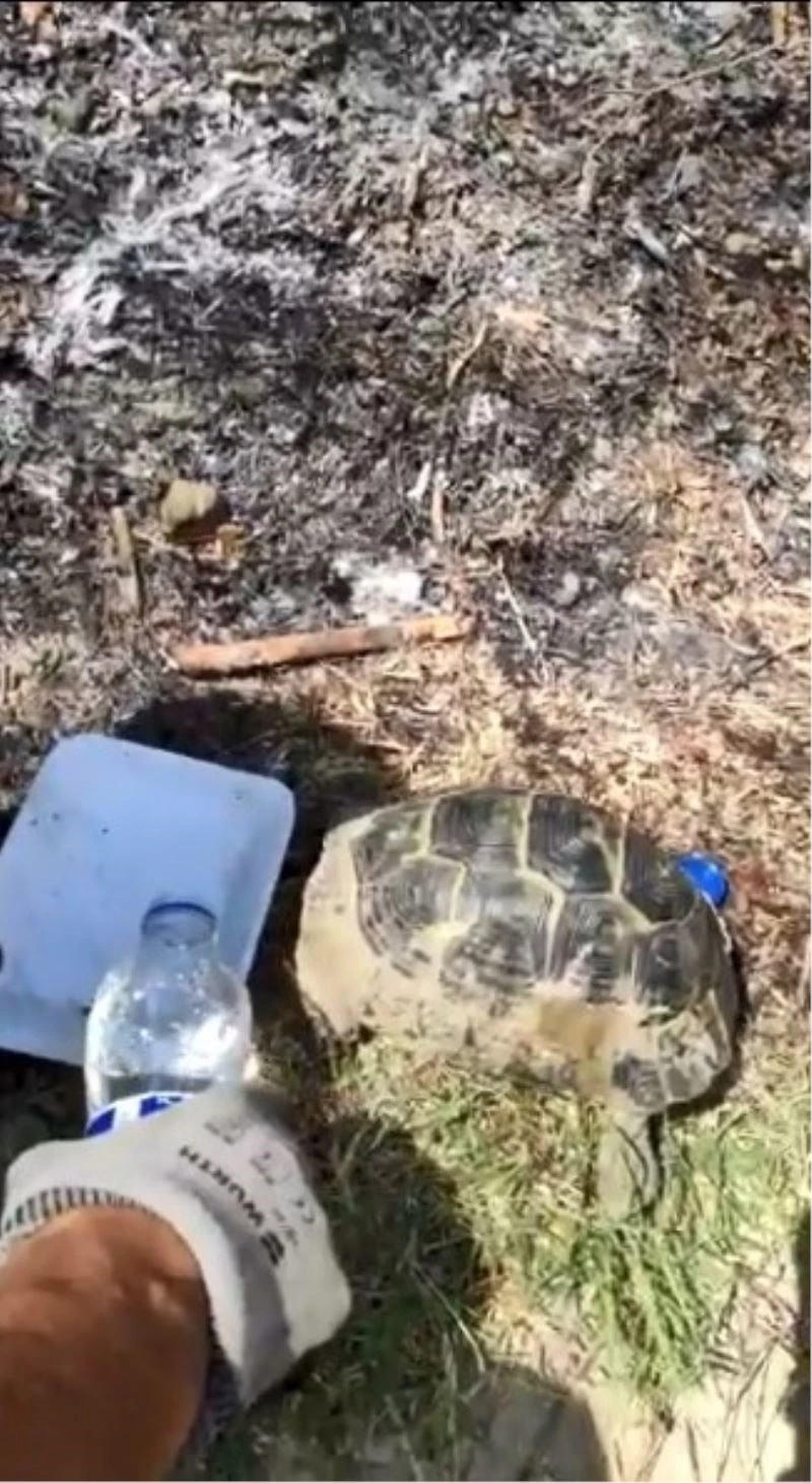Adana’daki orman yangınını söndürme çalışmalarına destek için Kastamonu’dan giden ekipler, alevlerin arasında kalan kaplumbağaları kurtardı. Ekipler, kaplumbağalara su vererek hayata tutunmalarını sağladı.