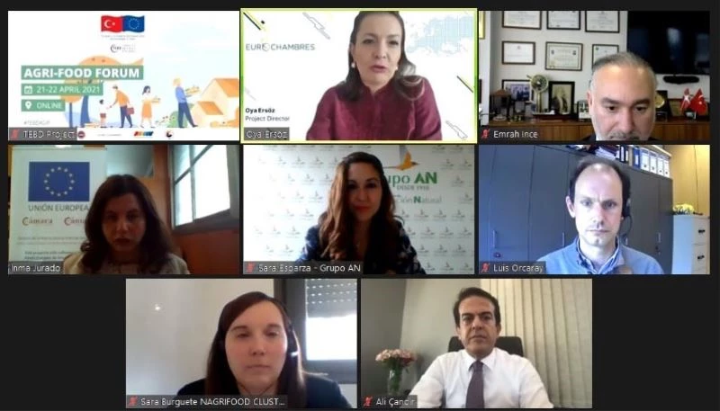 Antalya Ticaret Borsası Yönetim Kurulu Başkanı Ali Çandır, Türkiye Odalar ve Borsalar Birliği (TOBB) ile Avrupa Ticaret ve Sanayi Odaları Birliği (EUROCHAMBRES) işbirliğinde yürütülen Türkiye AB İş Dünyası Diyaloğu Projesi kapsamında düzenlenen “Tarım ve Gıda Forumu”na katıldı. EUROCHAMBRES TEBD Takım Lideri ve Proje Direktörü Oya Ersöz’ün moderatörlüğünde gerçekleşen “Tarımsal Gıda Ekosisteminin İhtiyaçları ve Fırsatları” başlıklı oturumda konuşan Çandır, Antalya’nın tarımsal potansiyeli ve yatırım fırsatlarını anlatırken, Borsa’nın proje ve çalışmaları hakkında bilgi verdi.