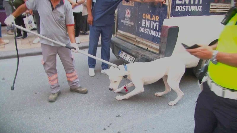 Köpek belediye ekiplerince barınağa götürüldü