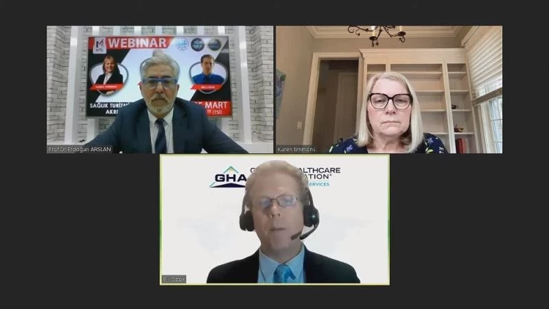 Türkiye ve Uluslararası Sağlık Hizmetleri Denetçisi unvanını kazanarak, Türkiye’deki otel ve hastanelerin sağlık tesislerine dönüştürülebilmesi yönünde akreditasyon ve denetçi belgesini elinde bulunduran Alanya Alaaddin Keykubat Üniversitesi (ALKÜ) Rektör Yardımcısı ve Sağlık Turizmi Uygulama ve Araştırma Merkezi (SATUMER) Müdürü Prof. Dr. Erdoğan Aslan, GHA ve Well Hotel yöneticileri CEO Karen TIMMONS ve İş Geliştirme ve Pazarlama Müdürü Bill COOK ile “Sağlık Turizminde Uluslararası Akreditasyon” konusunda çevrimiçi seminer gerçekleştirdi.