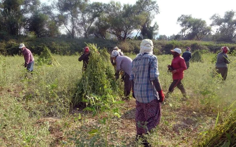 Gökova Körfezi’nin iyotlu rüzgarının ayrı bir tat oluşturduğu altın sarısı sarı susam hasadı için bölgede çalışacak işçi sıkıntısı yaşanıyor. Tarladaki susamın hasat döneminde 50-90 kilometre uzaklıktaki Köyceğiz ve kırsal mahallelerinden günübirlik işçi taşınıyor.