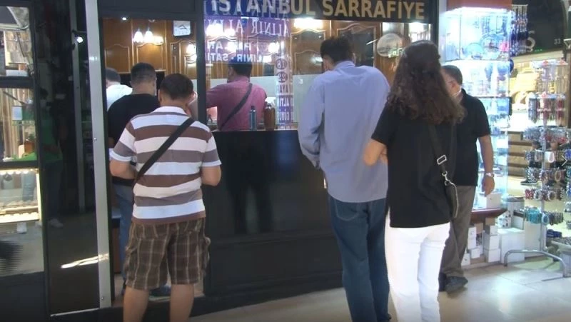 Altının rekor kırmasıyla tarihi Kapalıçarşı’daki sarraflarda yoğunluk oluştu
