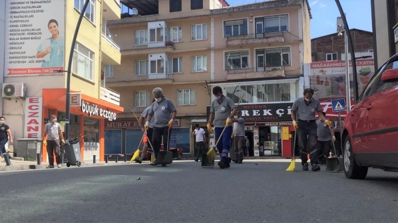Ordu’nun Altınordu Belediyesi tarafından bölgede etkili olan sağanak yağış sonrası oluşan sel ile birlikte şehirde biriken çöpler süpürülüyor, sokaklar yıkanıp dezenfekte ediliyor.