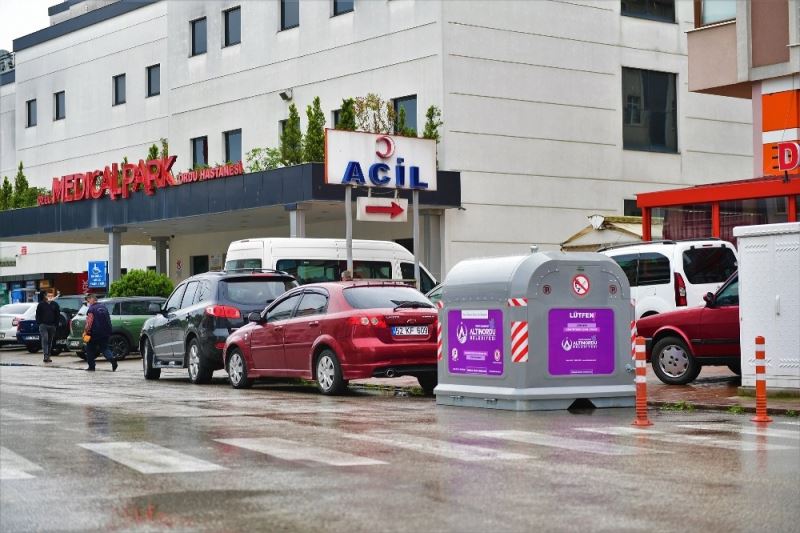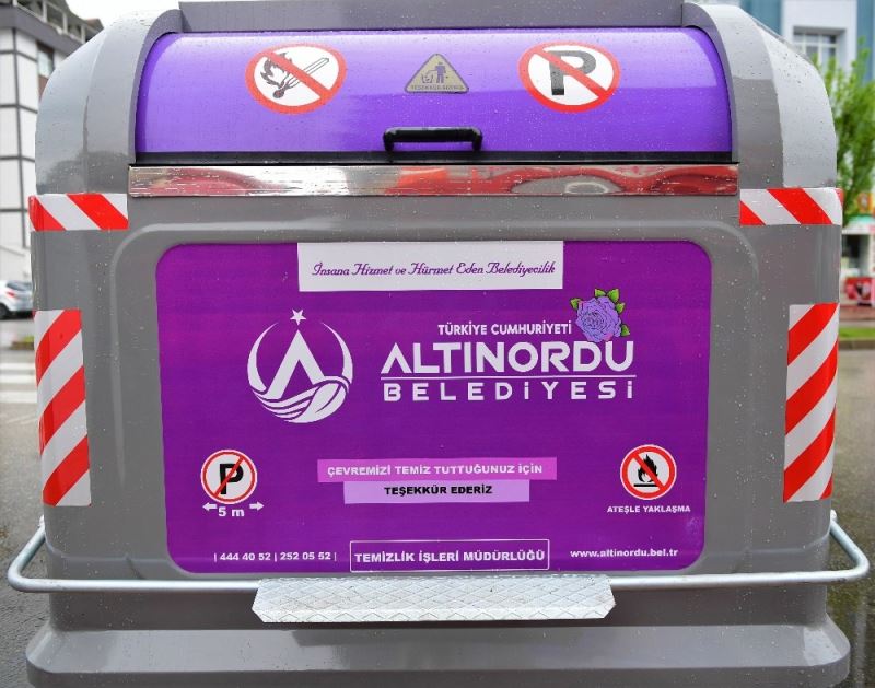 Hijyenin öne çıktığı bu hassas dönemde vatandaşların ortak kullandığı yer üstü çöp konteynerleri için çalışma başlatan Altınordu Belediyesi el ile açılan kapaklı konteynerler yerine, el değmeden pedallı mekanizma ile açılıp kapanabilen 3750 litrelik hacme sahip yeni nesil konteynerler yerleştiriyor. Mor-beyaz renklerle tasarlanan yeni konteynerler şehrin birçok noktasında vatandaşın hizmetine sunuluyor.