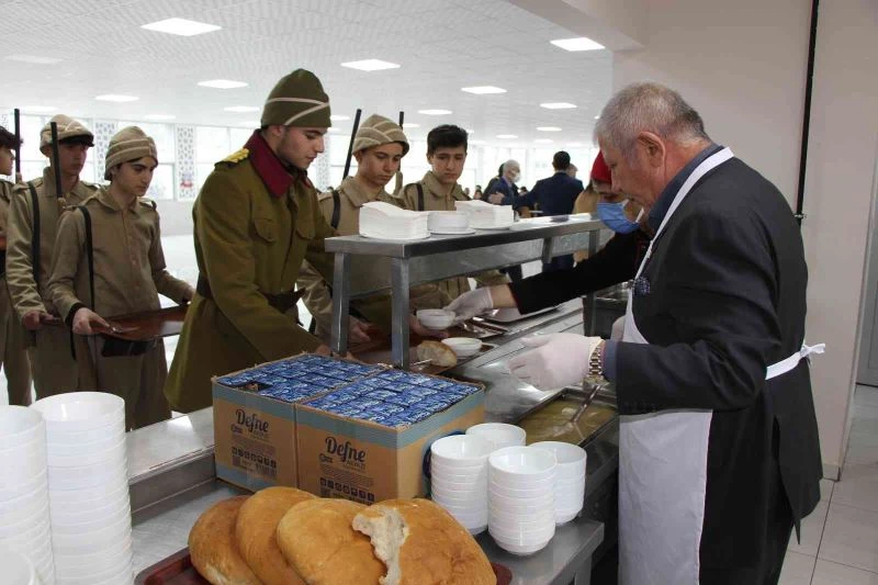 Belediye Başkanı Sarı’nın misafiri olarak o dönemin asker üniformasıyla yemeğe gelen lise öğrencilerinden 16 yaşındaki Enes Malik Kaya ise, “Daha önce Çanakkale menüsünden yememiştim. Ruhları şad olsun” ifadelerini kullandı.