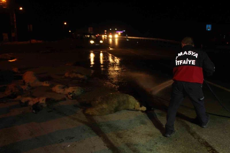 Amasya’da otomobillerin çarptığı sürüdeki 25 koyun telef oldu