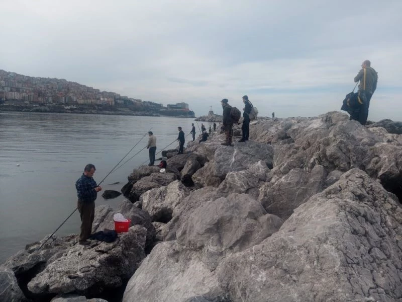 Zonguldak’ta liman arkası mevkiinde sarı kanat bolluğu yaşanması nedeniyle vatandaşlar oltalarına alarak limana koştu.