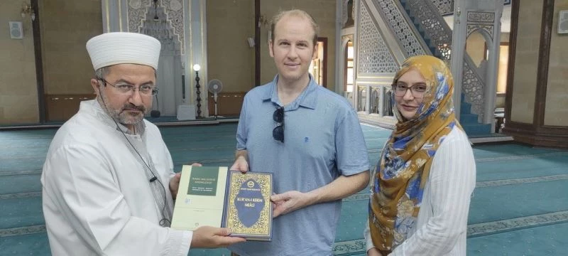 Okunan ayet-i kerimelerin mealinin paylaşılmasının ardından Müftü Kadir Demirlenk, İslam’ın iman ve ibadet esasları hakkında David Benjamin’e bilgi verdi.