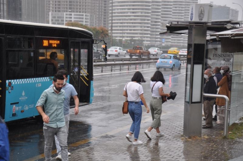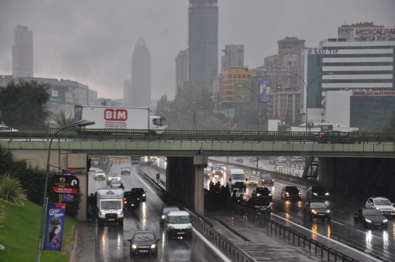 Meteoroloji Bölge Müdürlüğünün tahminleri doğrultusunda beklenen sağanak yağmur sabah saatlerinde Anadolu Yakasında etkili olmaya başladı. Yağmura hazırlıksız yakalanan vatandaşlar üst geçit altlarına ve otobüs duraklarına sığınırken D-100 Karayolunda yoğun trafik oluştu.