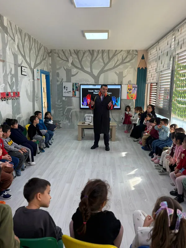 MERSİN - Anamur Cumhuriyet Başsavcısı Tanju Çatlı, İnsan Hakları ve Demokrasi Haftası kapsamında anaokulu öğrencileriyle bir araya geldi.