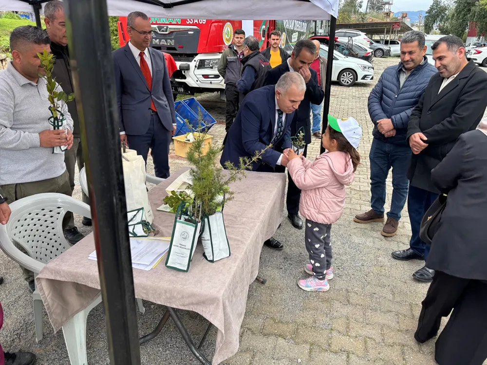Anamur Kaymakamı Kemal Duru'nun da katıldığı etkinlikte öğrencilere fidan dağıtıldı.