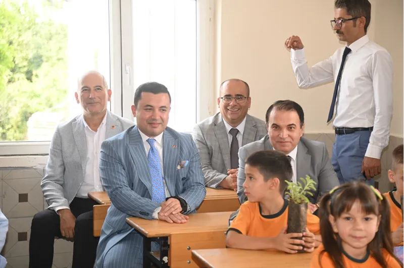 Duru, öğrencilere fidan ve çeşitli hediyeler dağıttı.