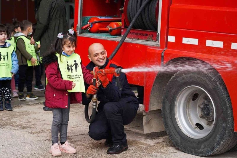 Belediye Meclisi Başkan Vekili Mustafa Sadık Kaya, Belediye Başkan Yardımcısı Ahmet Gürses, İtfaiye Müdürü Fatih Zeyhan ve itfaiye erleri öğrenci ve öğretmenleri karşılayarak, itfaiye müdürlüğünü gezdirdi. İtfaiye Müdürlüğü’nün çalışmaları hakkında bilgi alan öğrenciler, merak ettikleri soruların cevabını İtfaiye Müdürlüğü Görevlisi Onur Kemal Sağaslan’dan aldı. İtfaiye Müdürlüğünün kamyon ve itfaiye kıyafetlerini inceleyerek, bilgi alan öğrenciler daha sonra itfaiye aracından su sıktı.