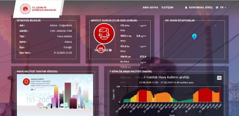 Öte yandan Adana yüzde 157 oranında değişimle Hava Kalitesi Endeksi kayıtlarına göre yaz aylarında hava kalitesinin en çok düştüğü ikinci il oldu. 31 Ağustos saat 22.00’da Adana Valiliği Çevre ve Şehircilik İl Müdürlüğü’nün sitesindeki, HKİ ölçümlerindeyse kentteki havanın partikül maddeler, karbonmonoksit, kükürt dioksit, azot dioksit ve ozon değerlenin ortalama 190 çıktığı ve hava için ‘sağlıksız’ uyarısı verdiği görüldü.