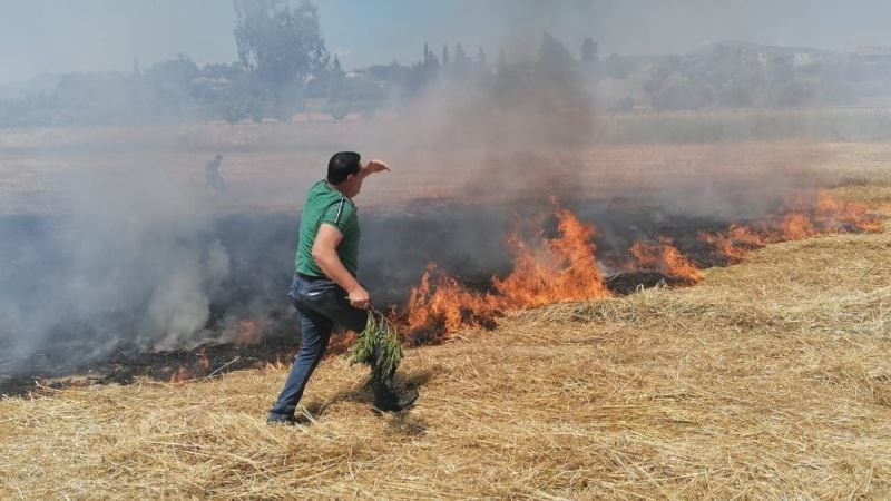 Antalya’nın Manavgat ilçesinde hasadı yapılan ekin tarlasındaki anızda yangın çıktı. Birden alevlerin yükseldiği yangına ilk müdahaleyi 2 vatandaş ellerine aldıkları ağaç dallarıyla yaparken, itfaiye ekiplerinin de müdahalesiyle kontrol altına alındı.