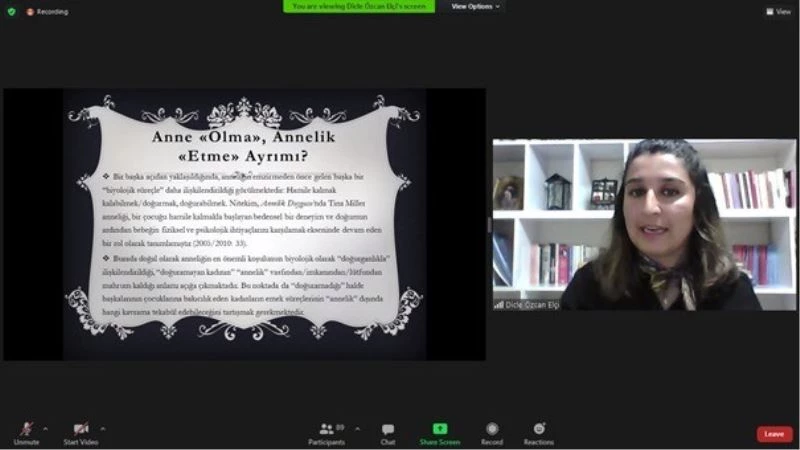 Sosyoloji Bölümü ve Sosyoloji Kulübü’nün ortaklaşa düzenlediği “Anne Olamamanın Fenomenolojisi” başlıklı söyleşi, Fen Edebiyat Fakültesi Dr. Öğr. Üyesi İpek Agcadağ Çelik’in yönlendiriciliği ve Dr. Öğr. Üyesi Dicle Özcan Elçi’nin sunumları ile çevrim içi olarak gerçekleştirildi. Yapmış olduğu çalışma ekseninde söyleşisini gerçekleştiren Elçi, çalışmasında Şırnak ili ve ilçelerinde anne olamayan kadınların toplumsal yapıda nasıl ve ne şekilde var olduklarını ve var olmaya çalıştıklarını anlamayı amaçladığını ifade etti. Elçi, anneliğin kadınlar için bireysel, biyolojik ve bedensel bir süreç olmanın çok ötesinde, tarihsel, kültürel ve politik bağlamlara dayanan, tarihsel süreçte hakim dönemin konjonktürel yapısından etkilenerek şekillenen bir fenomen olduğunu belirtti. Öte yandan Elçi’ye göre annelik söylemi, anne olan kadar olamayanları, olmak istemeyenleri de kuşatmakta; anne olanı anneliğinin niteliği, anne olamayanı eksikliği ve anne olmak istemeyeni düzen bozuculuğu üzerinden eleştirmektedir.