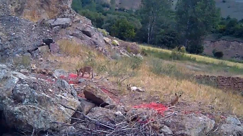Bayburt’ta anne tilki ve 4 yavrusu kameraya yansıdı.