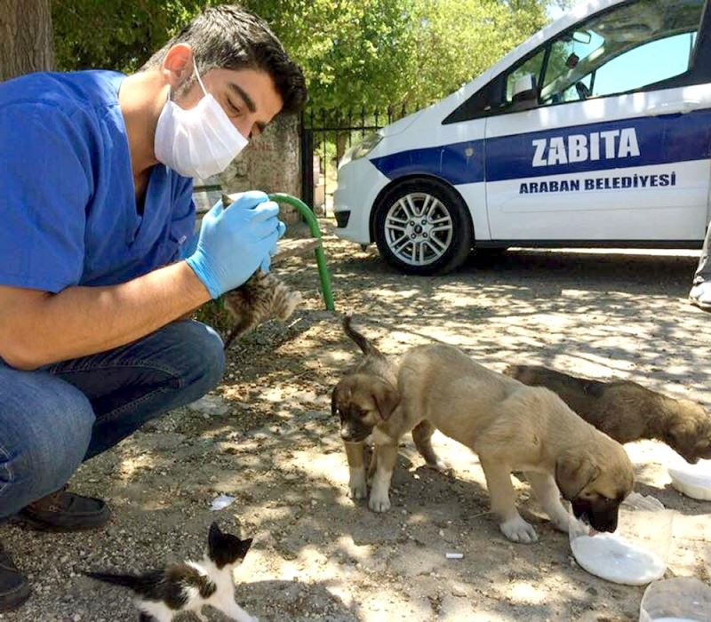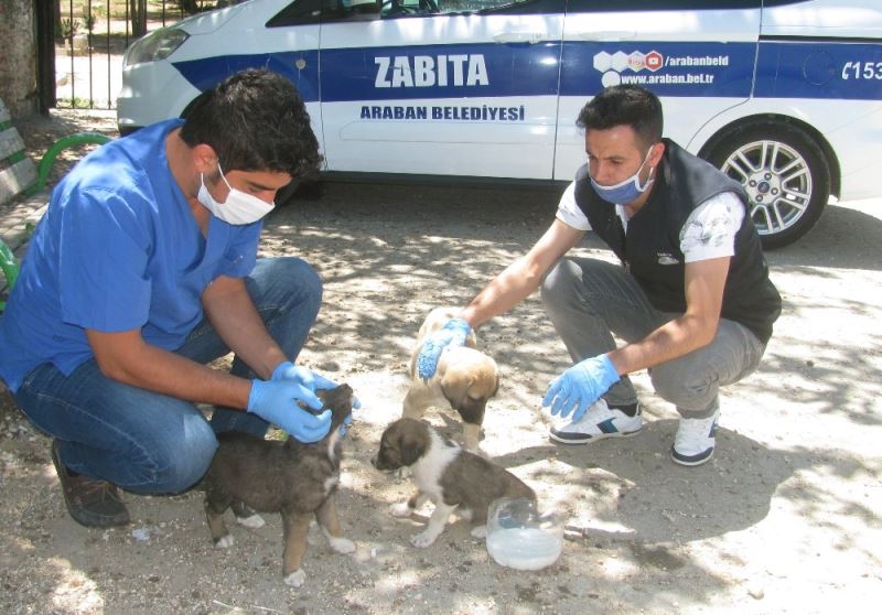 Araban ilçesinde mezarlıklar bölgesinde hayvan severler tarafından bulunan yavrular için belediye ile iletişime geçildi. Durumdan haberdar edilen Belediye Başkanı Hasan Doğru’nun talimatıyla harekete geçen ekipler yavruları alarak veterinere getirdiler. Belediyesi Meclis Üyesi Veteriner Hekim Mustafa Küreş yaptığı muayene sonrası aç olan yavrulara doyuruldu.