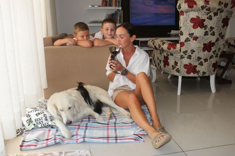 Türkiye’de yaşayan Ukraynalı aile, çöp konteyneri yanında bulduğu yeni doğmuş 3 kedi yavrusunu eve getirip keçi sütüyle beslemeye çalışırken, 5 yaşındaki hiç doğum yapmamış köpeklerinin süt verdiğini görünce şaşkına döndü. Yavru kediler köpeğin anne şefkatinden memnun.