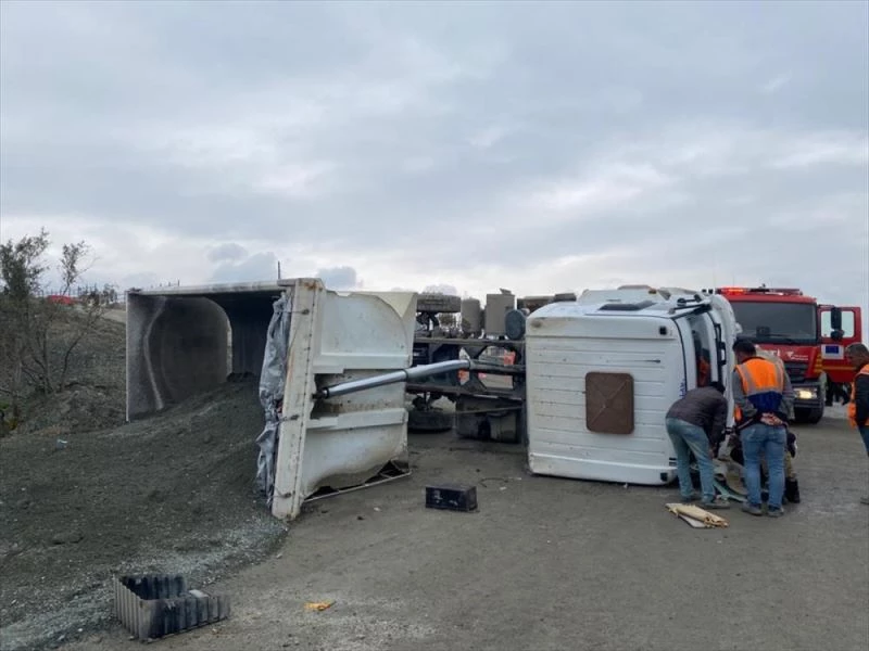 HATAY - Hatay'ın Antakya ilçesinde devrilen hafriyat kamyonun sürücüsü yaralandı.