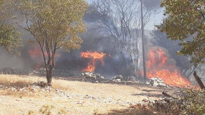 Saribelen Mahallesi'nde Ahmet Çelik'e ait evin yakininda bulunan anizda yangin çikti.