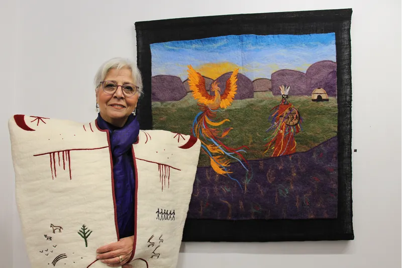 "Sergiye bir buçuk yıldır hazırlanıyorum ve burada 20 eserim bulunuyor, bu sayı artacak. Amacım yurt içi ve yurt dışında Ön Türk uygarlığını keçe ile anlatmak. Keçe atalarımızın dünyaya armağanı, çok önemli bir kumaş türü. Koyun yünleriyle basınç, sıcak su kullanarak oluşturulan bir dokuma ürünü."