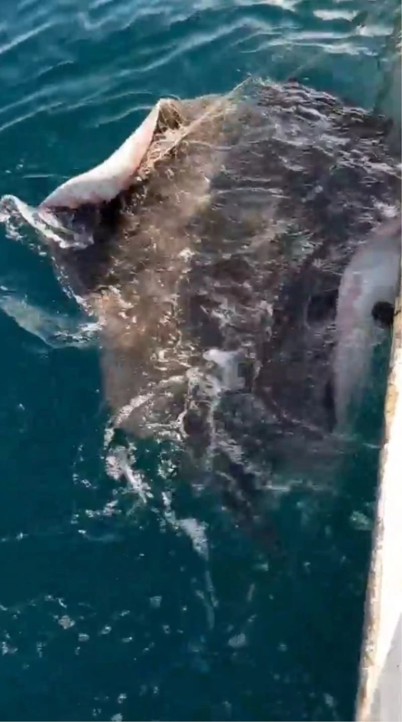 Antalya açıklarında balıkçıların ağına takılan dev vatoz balığı görenleri hayrete düşürdü.