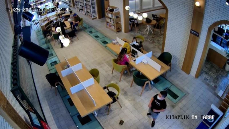 Gençlerin de ilgi gösterdiği kütüphanede güvenlik kamerasına yansıyan görüntülerde, bir çocuğun kitap okumak için kütüphaneye kaplumbağasıyla gelmesi yer alıyor.