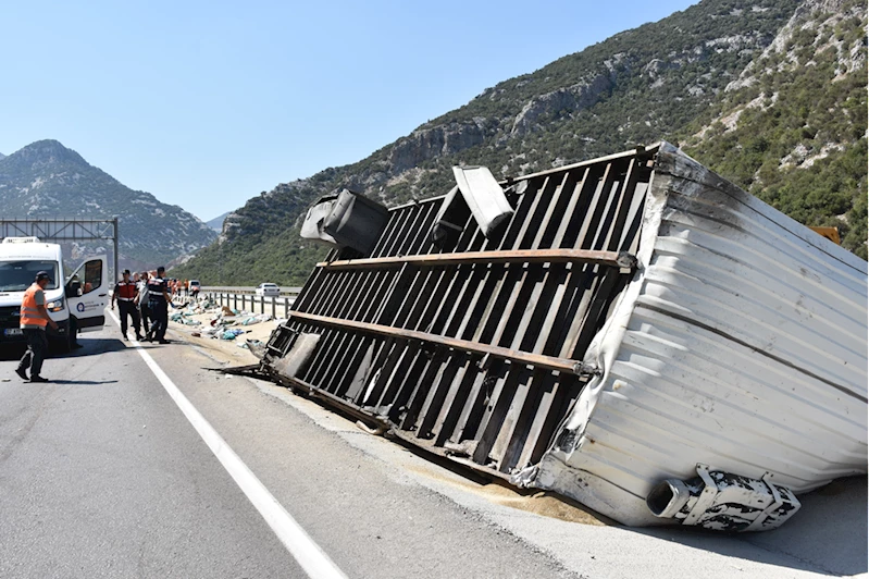 Antalya'da devrilen tohum yüklü tırın sürücüsü öldü