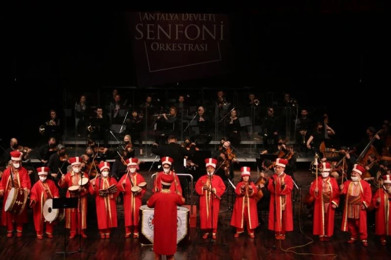 Antalya Devlet Senfoni Orkestrası'na, Antalya Devlet Opera ve Balesi sanatçısı Ümit Burak Tekinay eşlik ederken, mehter takımı da özel marşları seslendirdi.