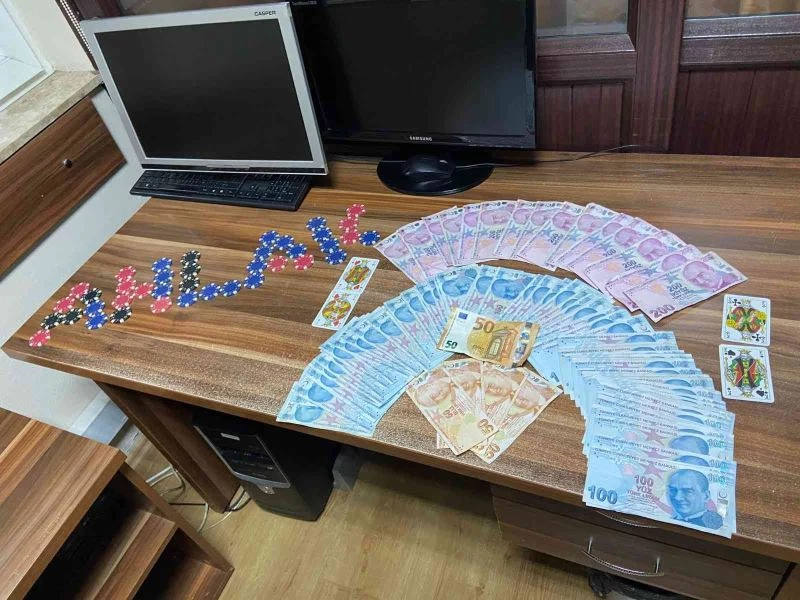 Antalya’da ‘kumar’ oynatılan işyerine düzenlenen operasyonda 46 adet poker pulu, 52 adet iskambil kağıdı, 10 bin 800 TL ve 50 euro para ele geçirildi.