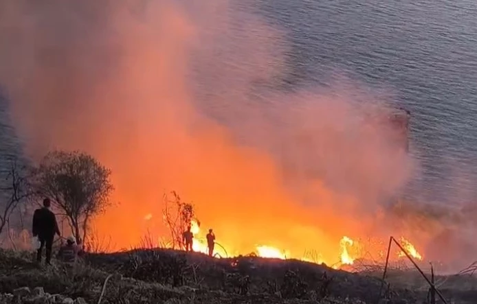 Muz bahçesinin zarar gördüğü yangının kısmen kontrol altına alındığı bildirildi.