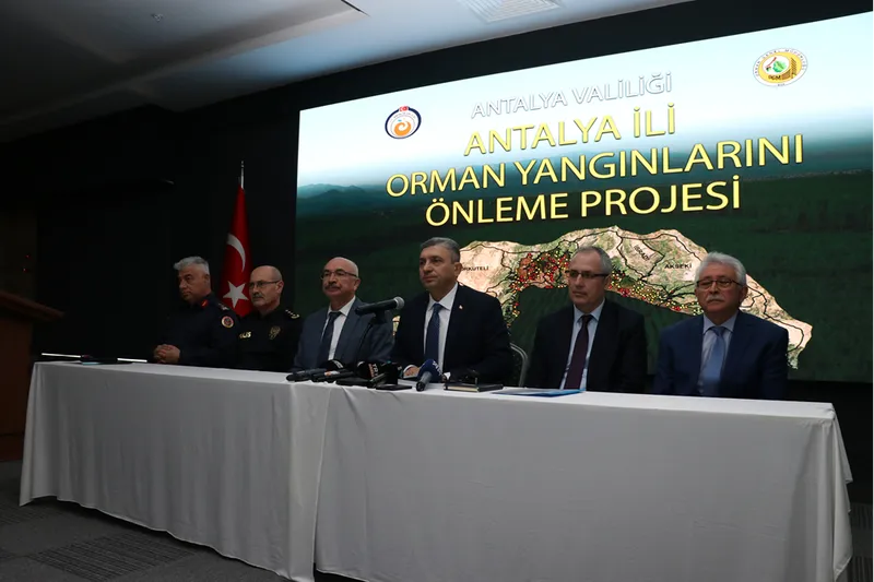 Vali Hulusi Şahin, Antalya Orman Bölge Müdürlüğü Toplantı Salonu'nda "Antalya Orman Yangınlarını Önleme Projesi"nin tanıtım toplantısının ardından yaptığı açıklamada, ülkenin toplam orman varlığının yüzde 5'inin Antalya'da olduğunu söyledi.