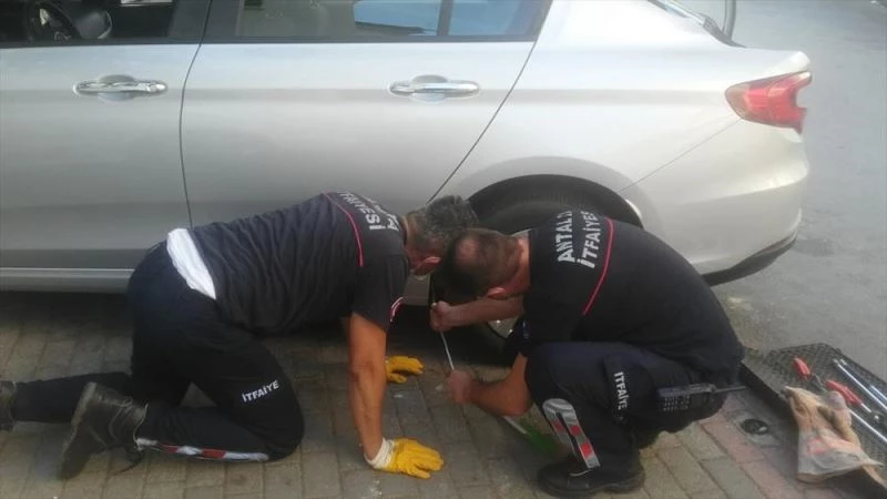 ANTALYA (AA) - Antalya'nin Alanya ilçesinde otomobilin çamurluk bölümüne sikisan kedi yavrusu, itfaiye ekiplerince kurtarildi.