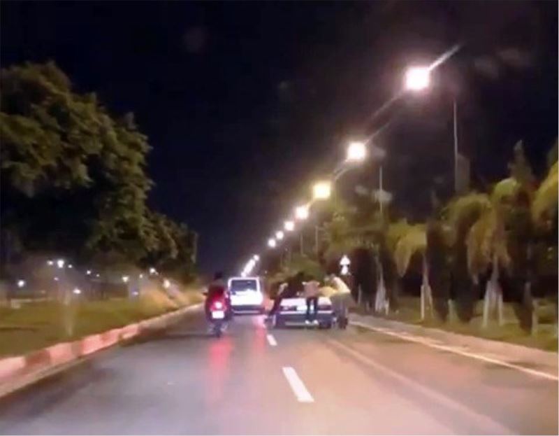 Üçüncü görüntüde ise bu kez iki gencin seyir halindeki otomobilin yan camına tutunarak yolculuk yaptıkları görüldü.
