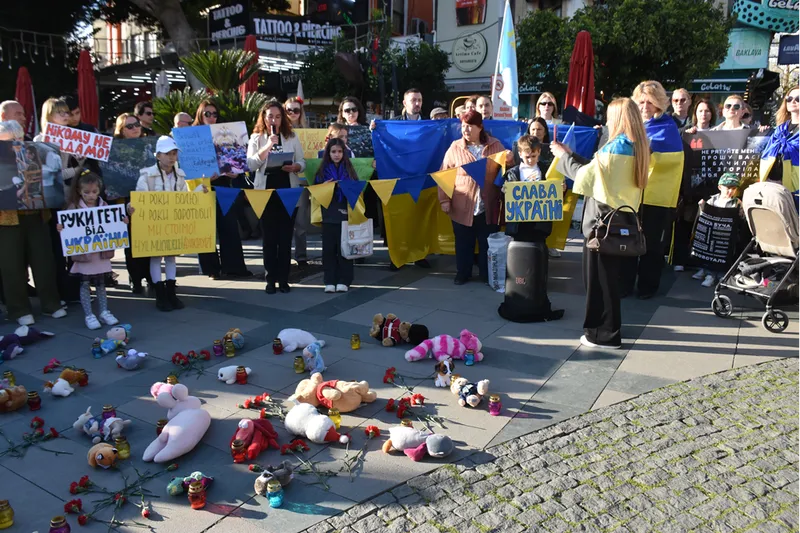 ANTALYA - Antalya'da, Rusya-Ukrayna Savaşı'nın 4. yılı dolayısıyla Ukraynalılar, Kalekapısı mevkisinde bir araya gelerek basın açıklaması yaptı.