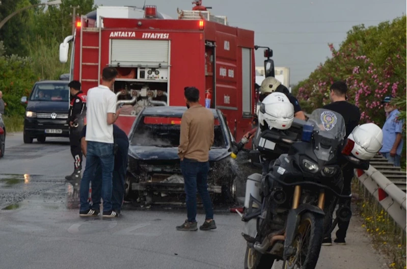 Azerbaycan uyruklu Maksim Aleksandroviç (37) idaresindeki, araç kiralama şirketine ait 07 AKK 208 plakalı otomobil, Cumalı Kavşağı yakınlarında henüz bilinmeyen bir nedenle alev aldı.